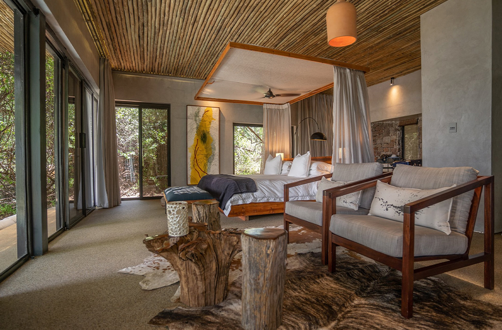 Highly acclaimed for the distinctly African, exquisite interiors, Matetsi showcases polished earth finishes, lustrous hand-beaten local copper detailing, and cool contemporary flows between interior and exterior living spaces. Guests enjoy a diverse range of sociable or retreat spaces and indulge in the wilderness in privacy and comfort.
